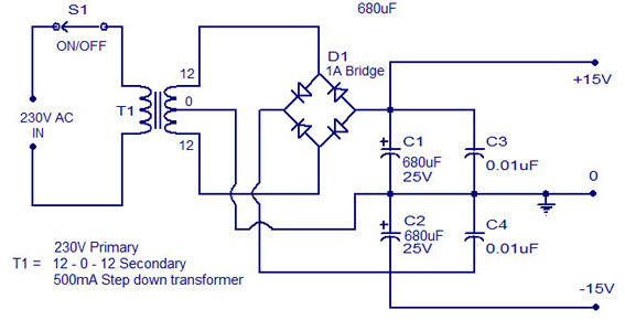 dinyalakan denga menggunakan pasokan/catu daya ganda +15 / -15.